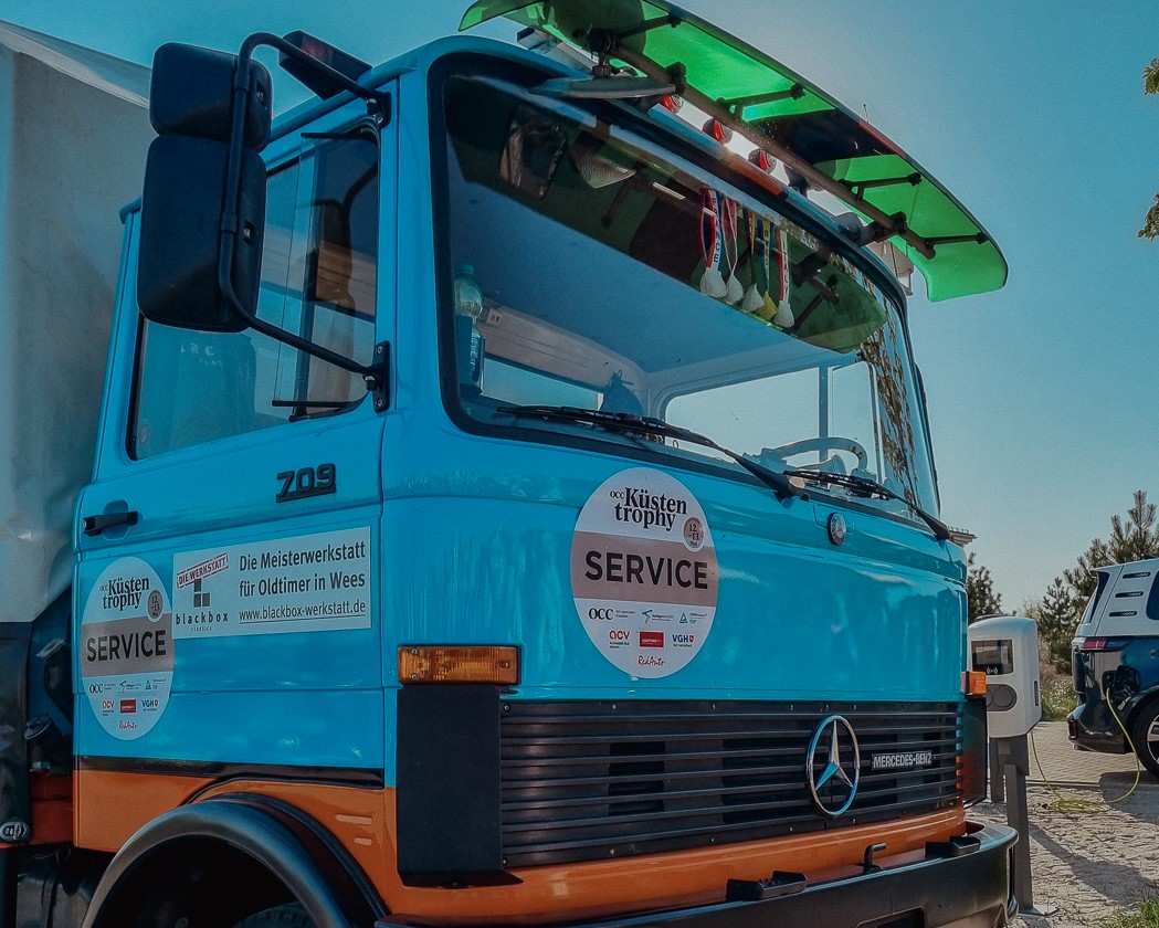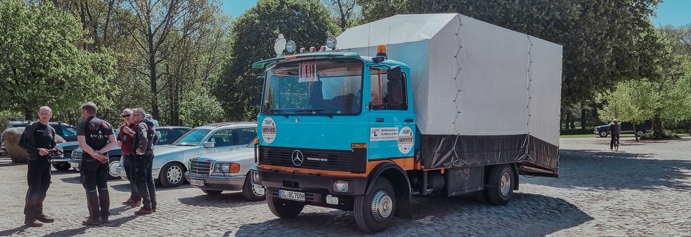 Unser SK ist seit 2023 frisch in unserem Fuhrpark. Er ist ein ehemailges Schausteller Fahrzeug und daher sehr gepflegt. Er kann mit einem Auflieger mehrere Vermietoldtimer an ihren Einsatzort befördern. Sein Kofferaufbau wird außerdem zu einer mobilen Werkstatt ausgerüstet. Die technische Ausrüstung umfasst dabei viel Nützliches um eine Rallye zu begleiten und er passt mit seiner coolen Optik auf jedes Oldtimer-Event.