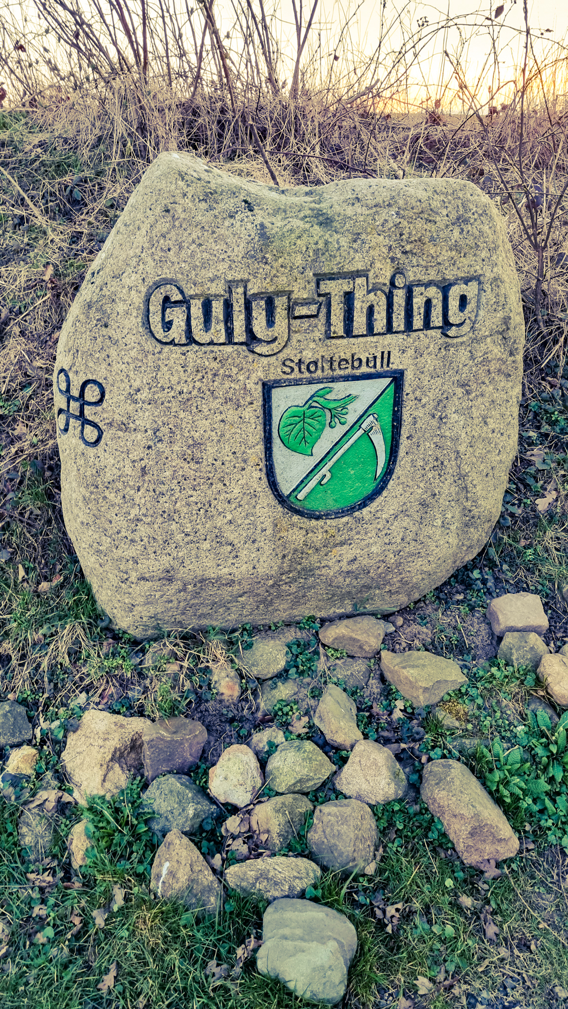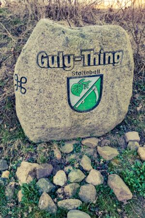 Der letzte Stopp unserer Reise vereint Steinzeit und Wikingerzeit: Der Guly Thing Thingplatz in Gulde nördlich von Oersberg. Er wurde von der Gemeinde 2003 etwas abseits der historischen Stelle rekonstruiert. Es handelt sich um einen Steinkreis aus Findlingen. Das Dorfthing regelte die Gerichtsbarkeit und alle Streitfragen in dem Ort. Dieses Dorfthing bestand bis ins 19. Jahrhundert. Auch heute noch werden im Sommer Sitzungen des Gemeinderates auf dem Thingplatz abgehalten. Auf dem Gelände findet sich außerdem ein rekonstruierter Dolmen und ein Runenstein.