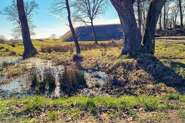 Das nächste Ziel ist die bekannte Wikingersiedlung Haithabu hinter Schleswig. Das dazugehörige Museum ist auch einen Besuch wert, das ist aber ein eigener Tagesausflug. Südlich von Schleswig an der B77 liegt in Busdorf ein Kreisverkehr, an der dritten Ausfahrt ist ein kleiner Parkplatz. Von hier ist es ein kurzer Fußweg zur ursprünglichen Wikingersiedlung am Haddebyer Noor. Hier kann man auf dem Verteidigungswall der Wikinger wandern und einmal um die alte Stadt herumgehen.